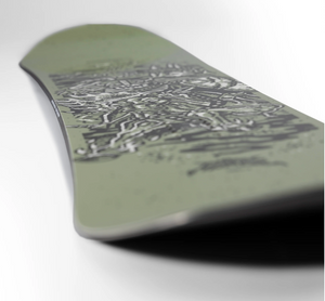 The PARK V1 camber configuration zeros out a traditional camber approach 4 cm before the end of the sidecut. The small zero camber sections provide a more controlled ride while retaining the response and power of a cambered board.